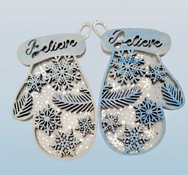 Capture the magic of the holiday season with these beautifully detailed mitten-shaped ornaments. Each pair is expertly crafted from wood and adorned with intricate winter-themed designs, perfect for adding a cozy and festive touch to your holiday decorations.